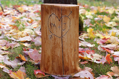 the log table I made for my daughter. I carved her and her man's initials into it then went over it with a wood burner. It then was painted with a water based/non toxic poly.